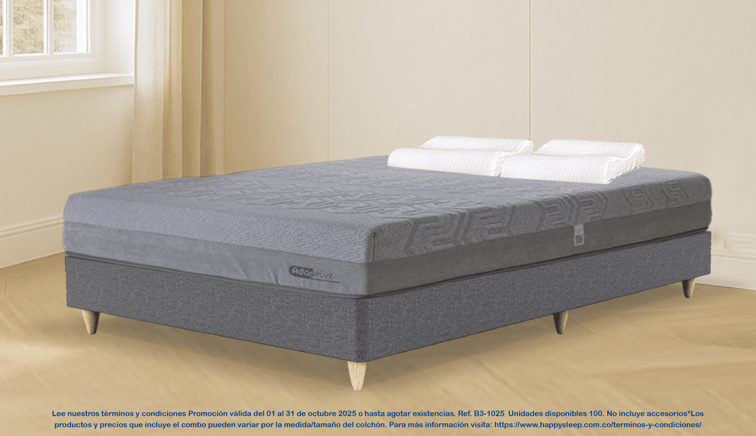Tamaño | Sencillo (100 x 190 mts), Semidoble (120 x 190 mts), Doble (140 x 190 mts), Doble + Somier Dividido (140 x 190 mts), Queen + Somier Dividido (160 x 190 mts), King + Somier Divido (200 x 200 mts) |