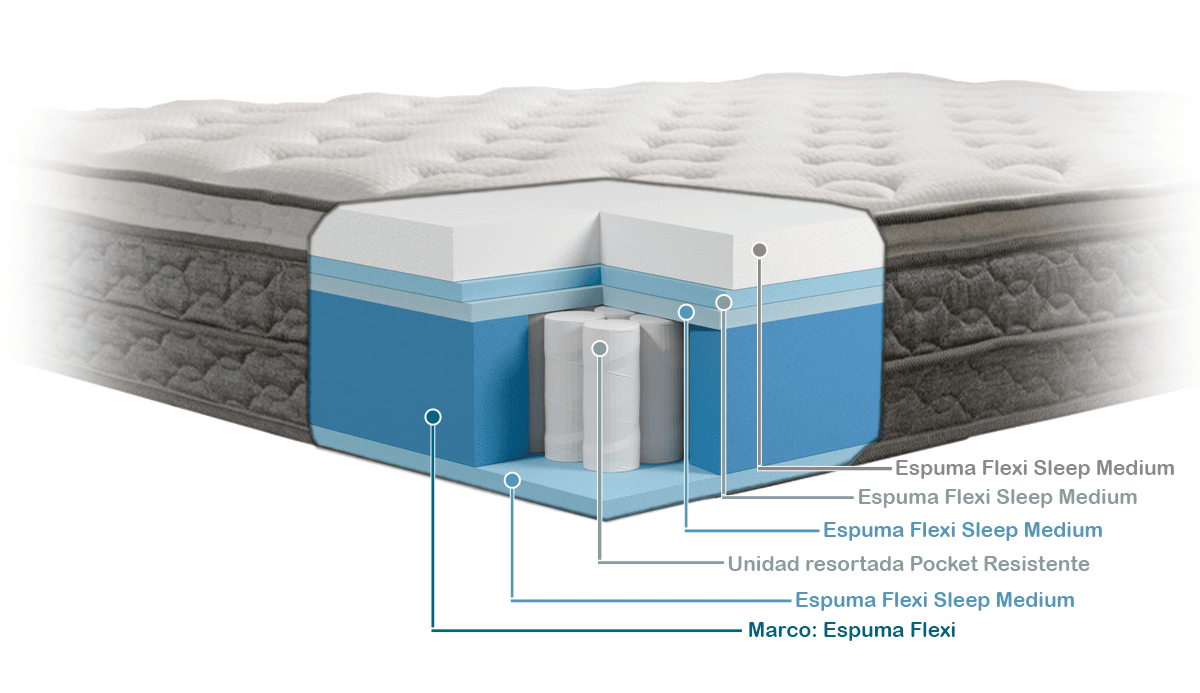 • está pensado para acompañarte en un descanso profundo y reparador. Su sistema de resortes Pocket independientes se adapta a la forma natural del cuerpo, brindando un soporte equilibrado que favorece la relajación y el confort en cada postura al dormir. La independencia de movimiento permite disfrutar de noches tranquilas, incluso en camas compartidas, manteniendo la continuidad del descanso. Sus capas de espuma generan una sensación de comodidad envolvente, combinando suavidad en la superficie con una firmeza intermedia que aporta estabilidad