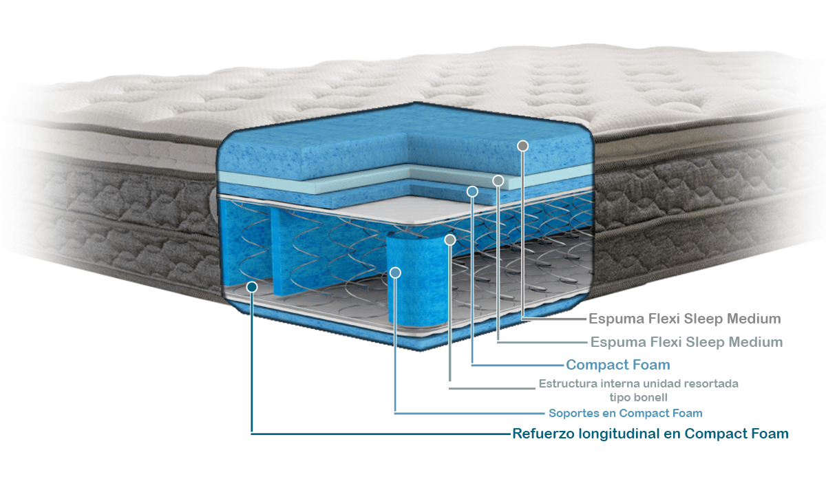 | Material interno | Estructura resortada – Espuma de alta densidad |