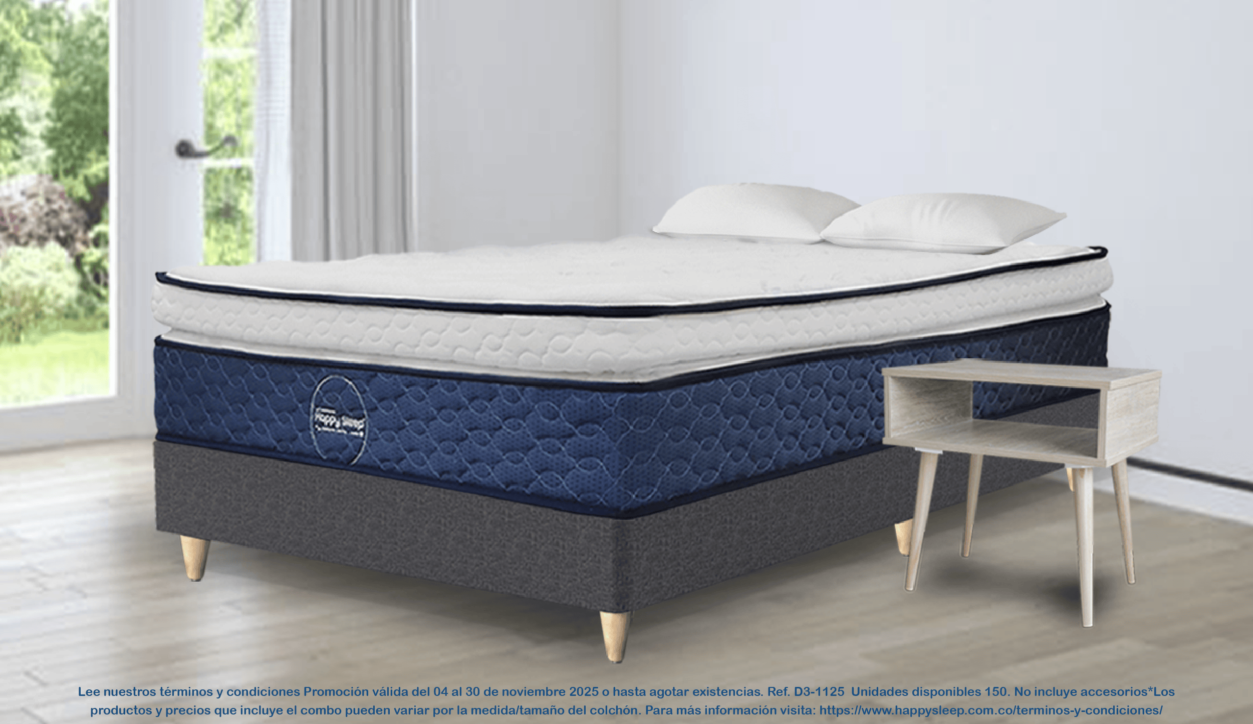 | Tamaño | Sencillo (100 x 190 mts), Semidoble (120 x 190 mts), Doble (140 x 190 mts), Doble + Somier Dividido (140 x 190 mts), Queen + Somier Dividido (160 x 190 mts), King + Somier Divido (200 x 200 mts) |