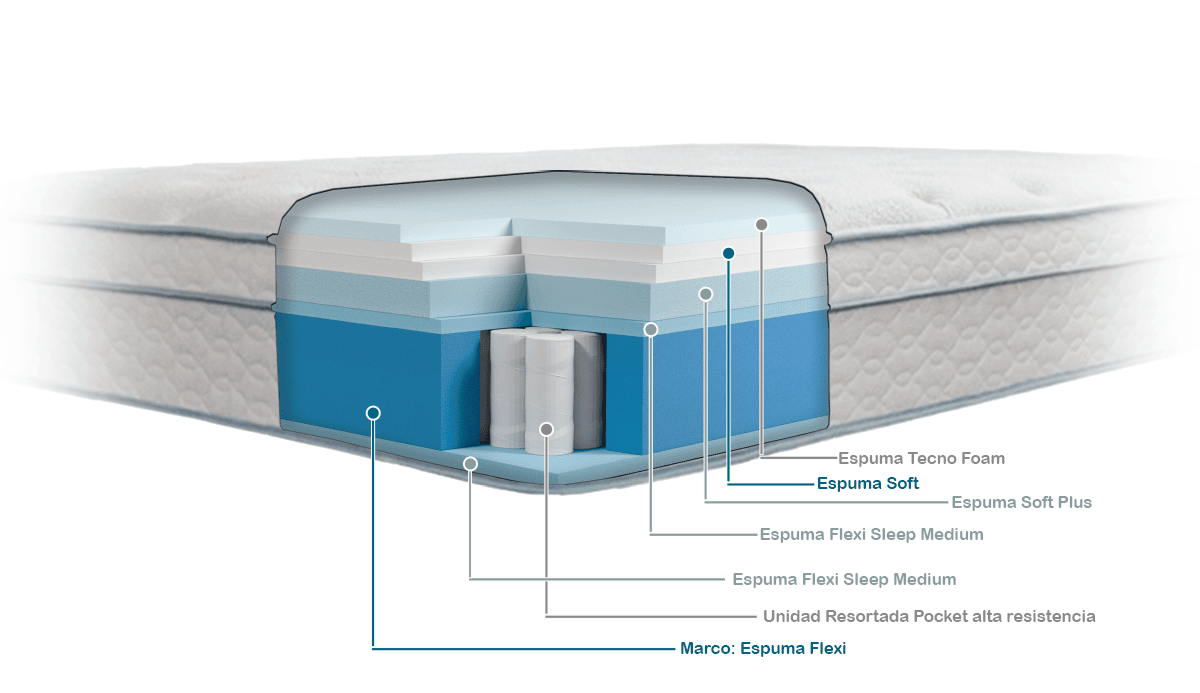 | Material interno | Resorte pocket – combinación de diferentes densidades de espuma. |