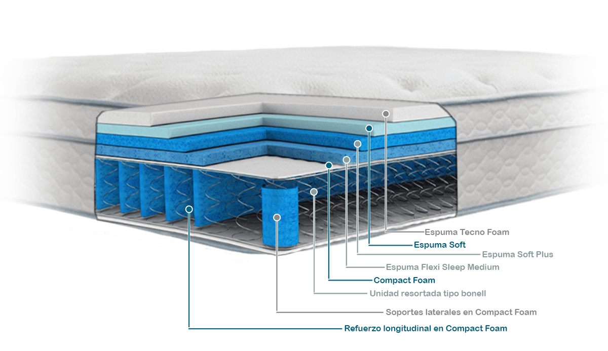 | Características | El Colchón Soft Cloud, está compuesto por estructura resortada tipo bonell y capas de espuma de diferentes densidades que gracias a sus características aportan firmeza y adaptabilidad |