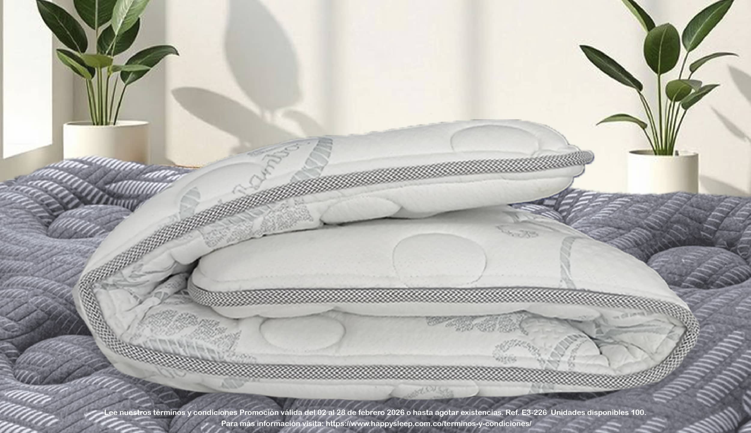 CaracterísticasHappy Pad – Topper de Colchón, es topper o colchoneta fabricada a partir de espuma tecno foam (espuma con memoria) que gracias a sus características suministra una sensación de ingravidez, disminuyendo los puntos de presión al contacto con el cuerpo durante el descanso.